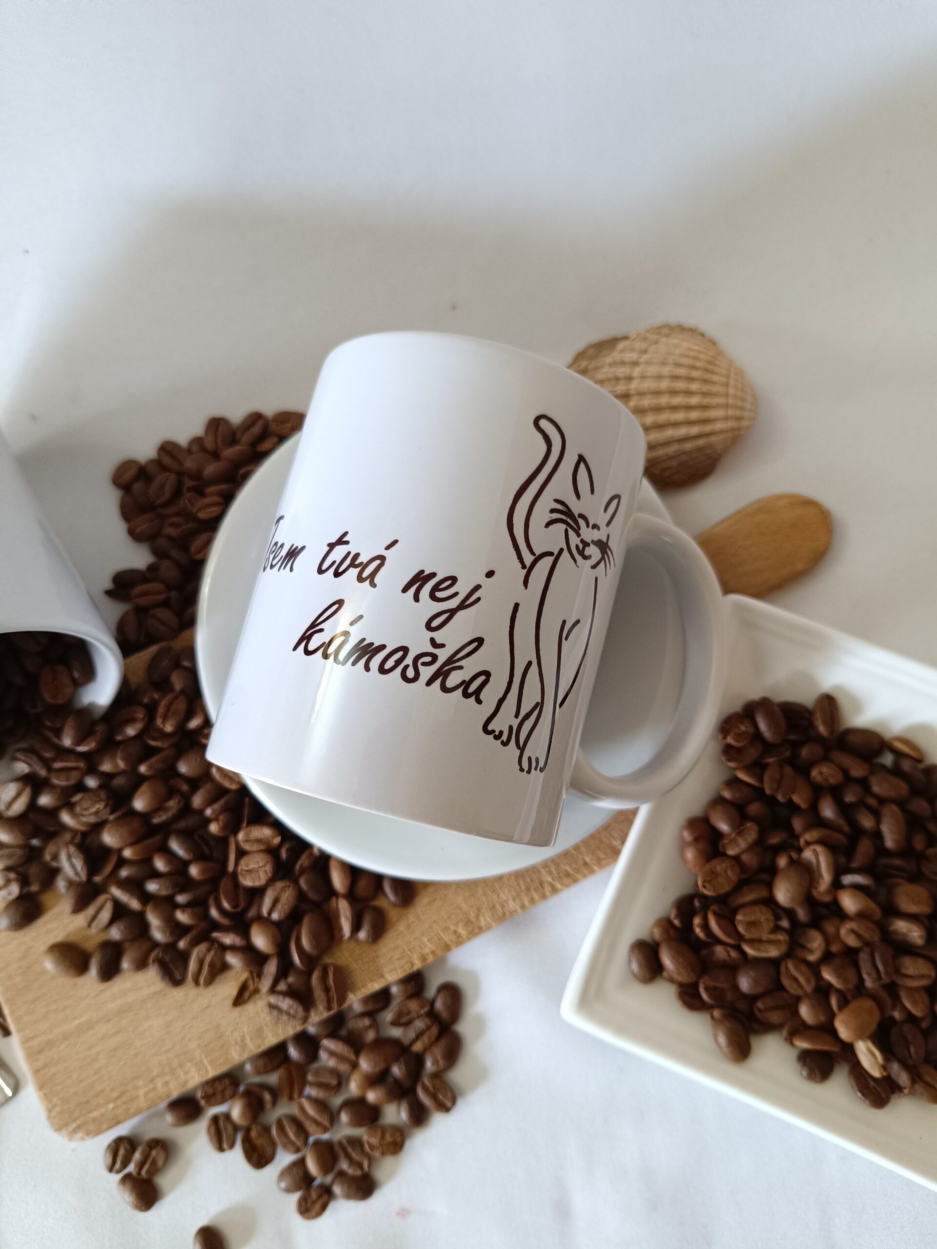 Hrníček s potiskem JSEM TVÁ NEJ KÁMOŠKA s kočičkou