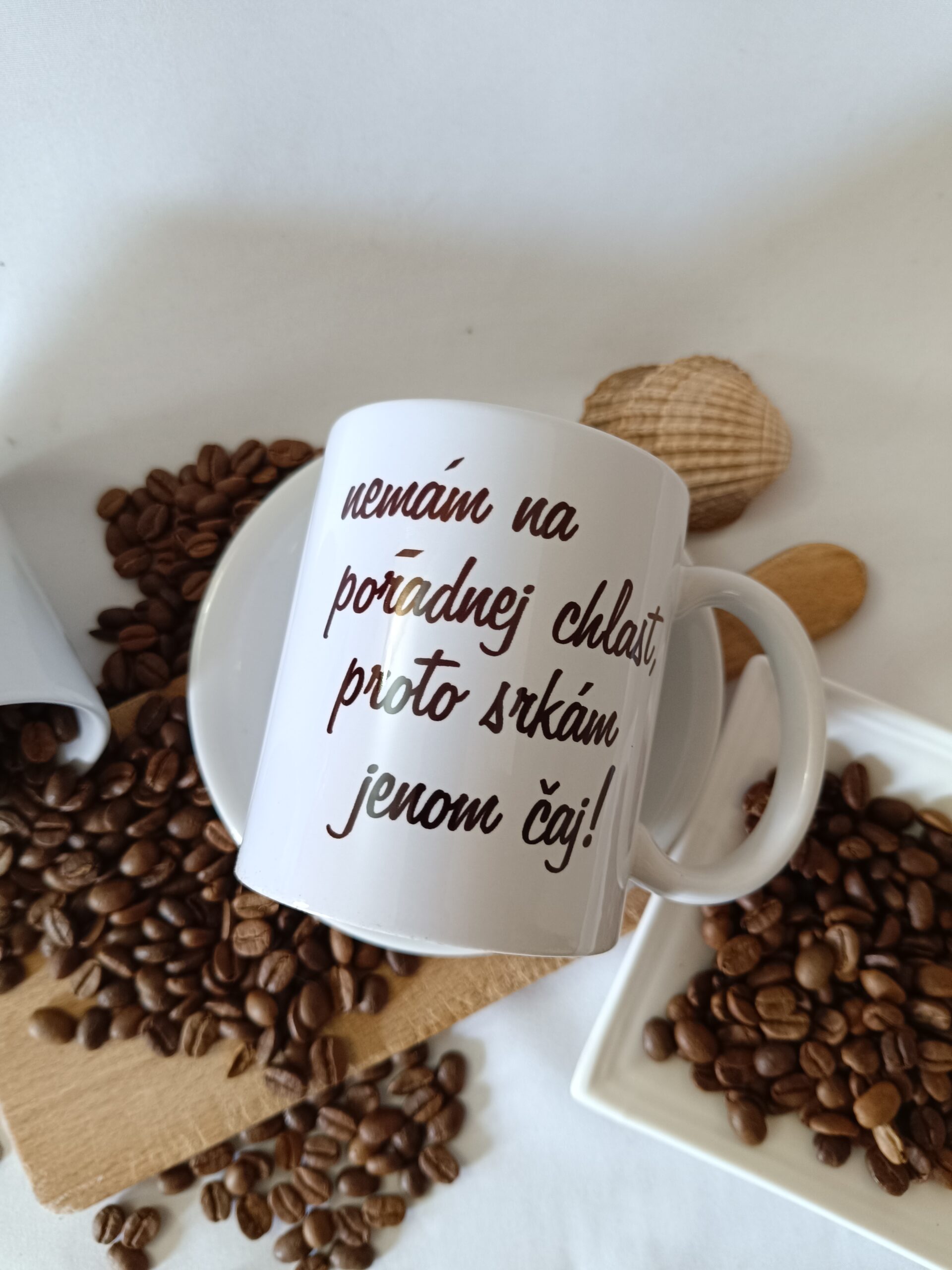 Hrnek s vtipným potiskem – NEMÁM NA POŘÁDNEJ CHLAST, PROTO SRKÁM JEN ČAJ.