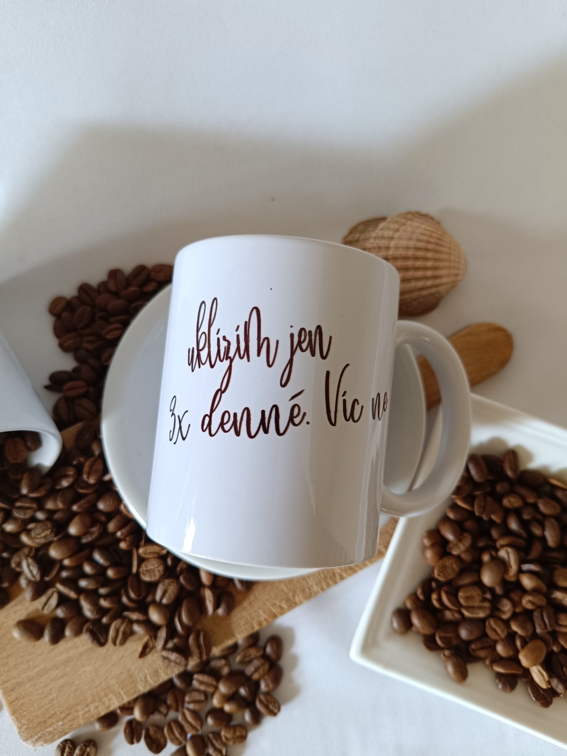 Hrnekček s potiskem UKLÍZÍM JEN 3X DENNĚ. VÍC NE.