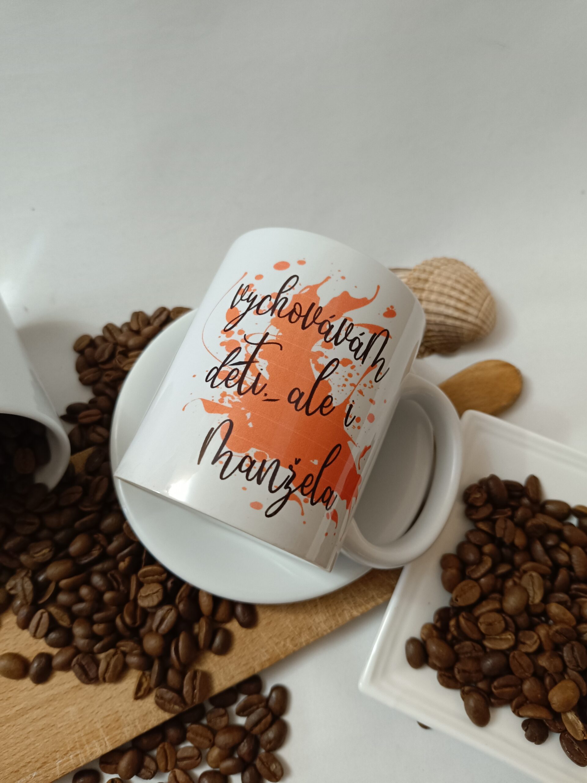 Hrnek s potiskem VYCHOVÁVÁM DĚTI, ALE I MANŽELA.