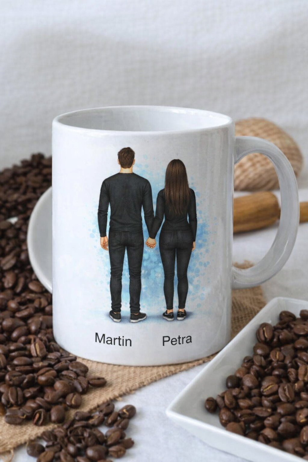 Hrnek – Zamilovaný pár – žena brunetka a muž (vlastní jména)